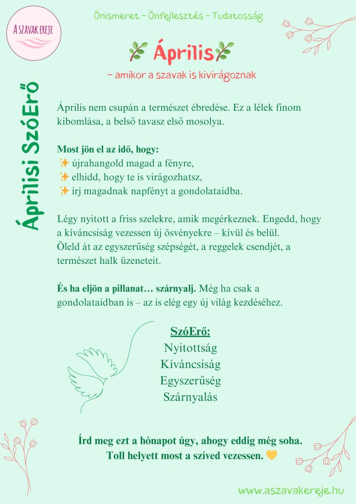 Letölthető kiadványok "SzóErő" Április Képzeld el, hogy minden egyes szó, amit kimondasz vagy gondolsz, egy apró mozaikként formálja az életed. A szavak erőt adhatnak, gyógyíthatnak, motiválhatnak – ha tudatosan használod őket. Töltsd le az áprilisi minikurzust! 1.290,00 Ft Processing ... Vásárold meg!Stripe Payments requires Javascript to be supported by the browser in order to operate.